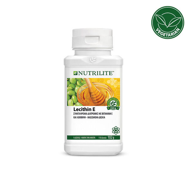 Nutrilite Lecithin E is a food supplement with vitamin E and lecithin. This product is an excellent combination of vitamin E (of naturally derived origin) and lecithin. These pleasant-tasting chewable tablets are sweetened with honey and flavoured with carob.